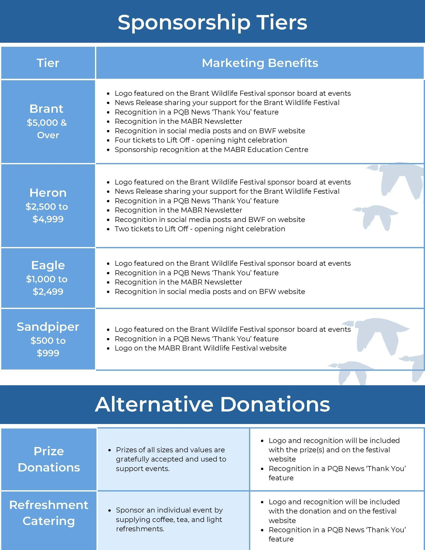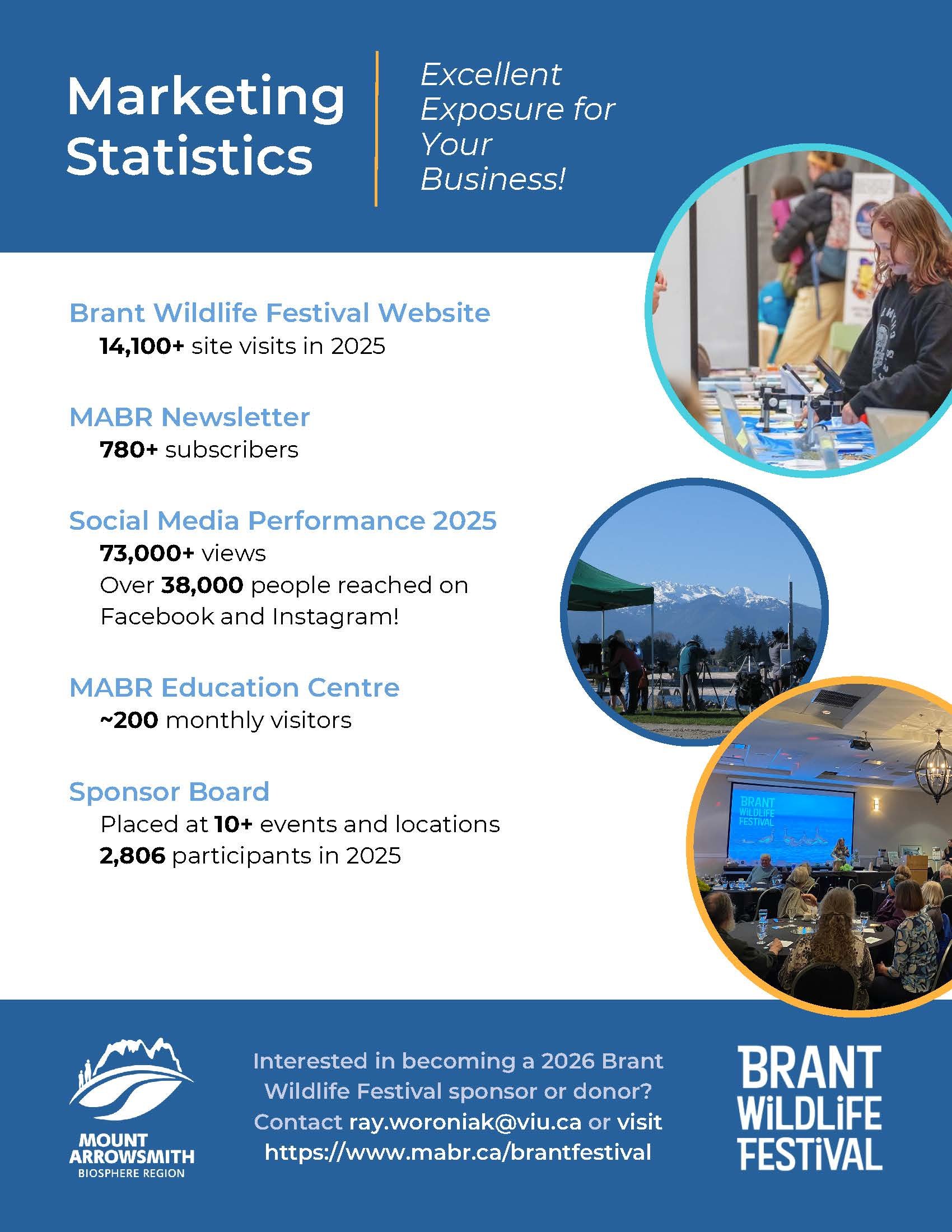 Supporting the Brant Wildlife Festival connects you with a network of community members, volunteers, non-profit organizations, regional schools, business and families all who care about our economic and environmental future. Your support demonstrates dedication to our community’s conservation, education, and well-being, while generating meaningful local economic impact and authentic visibility with an engaged audience.